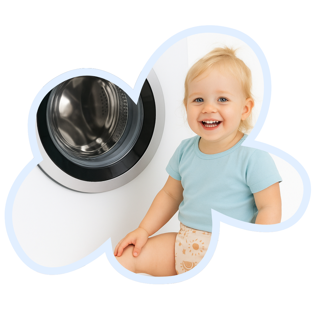 Onze luiers zijn zo ontworpen dat ze na elke wasbeurt zacht blijven en snel drogen, zowel aan de lucht als in de droger op lage stand. Even afspoelen, meewassen met de rest, en klaar voor gebruik. Geen gedoe, geen extra werk, gewoon een dagelijkse routine die vanzelf gaat.