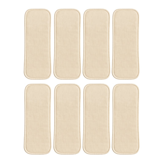 Een inlegger van hennep/katoen-mix (~55% hennep / 45% katoen). Hennep staat bekend om extreem hoge opname per mm: slank, maar kan veel vasthouden. Perfect voor heavy wetters, dutjes en nacht.